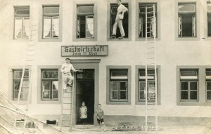 1957 übernahmen Gustav und seine Frau Luise die Gastwirtschaft. Die Toilette wurde von außen nach innen verlegt. Gustav und (später) sein Sohn Horst betrieben neben der Gastwirtschaft noch eine Klempnerei.