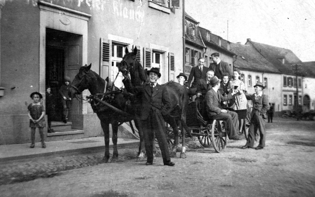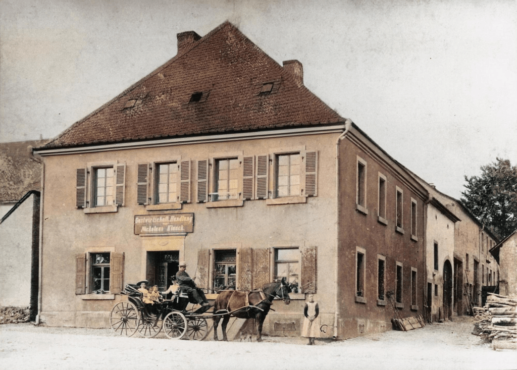 Das bereits seit Jahren leerstehende Gebäude wurde 1826 erbaut. Die Gastwirtschaft lag bis 1945 in den Händen von Anna Nickels, der Großmutter von Horst, dem letzten Inhaber. Über der Gaststube gab es im 1. Stock einen Saal mit Bühne für Theateraufführungen. 1947 kam der Sohn Gustav aus der Kriegsgefangenschaft zurück, seine Frau mit dem Sohn Horst aus der Eifel. 1949/50 wurde die Gastwirtschaft durch Anna wieder eröffnet.