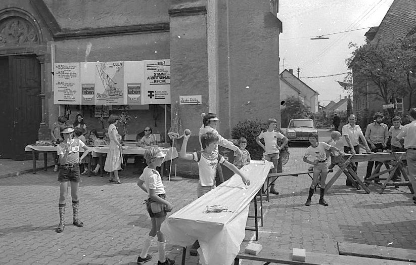 Vom 29.-31 August 1987 fand um die Kirche herum ein Pfarrfest statt, um mit dem Erlös die anstehende Renovierung des Pfarrheimes (Jugendheimes) zu finanzieren.