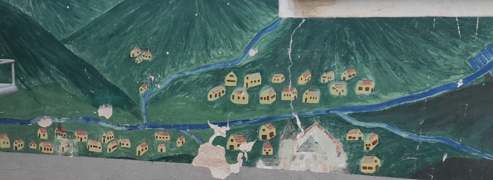 Auch die Außenfassade der Turnhalle war mit Wandbildern versehen (Fotos von 2022).