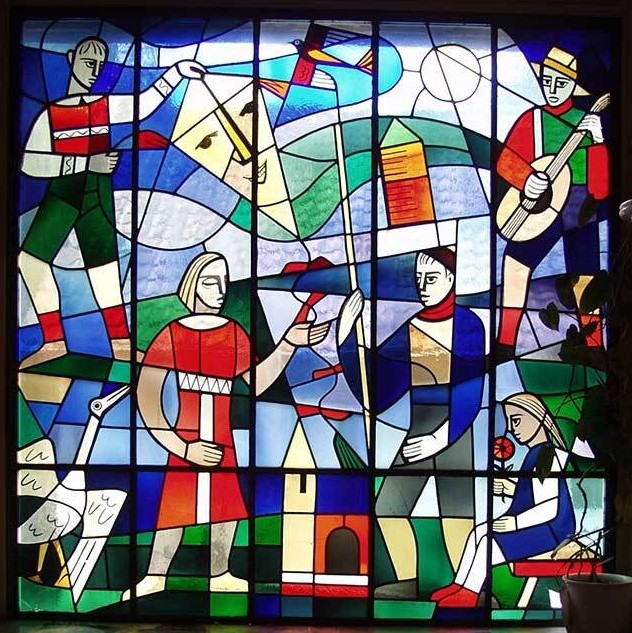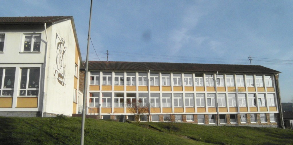 Der Künstler Nikolaus Josef Schmitt aus Nennig fertigte 1959 ein Sgrafitto für die Außenfassade des Nebengebäudes an und ein verbleites Buntglasfenster im ersten Stockwerk zwischen Haupt- und Nebengebäude. Die Darstellung des Sämannes wurde für die Außengestaltung geopfert, das Glasfenster in die Ballustrade des Treppenhauses eingebaut.