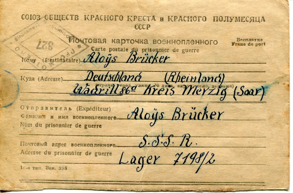 - Alois (Aloys) war seit 1945 in verschiedenen russischen Kriegsgefangenenlagern interniert.