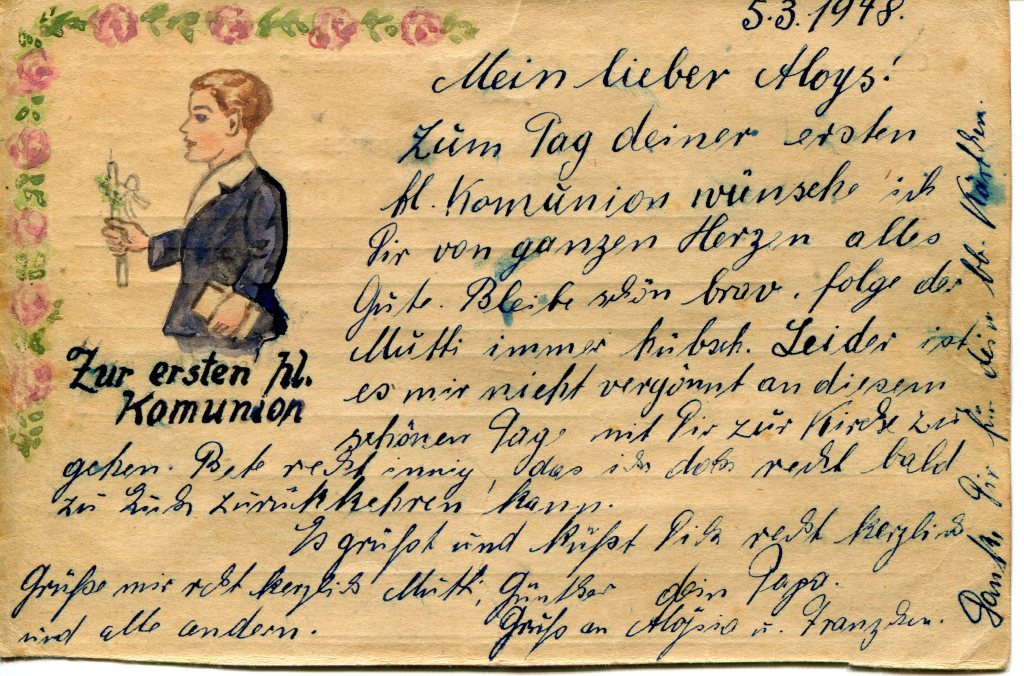 Das erste Lebenszeichen fast drei Jahre nach dem Ende des Krieges: Aloys meldet sich am 3.1.1948 aus einem russischen Kriegsgefangenenlager