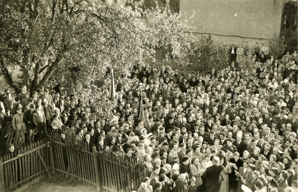 In der Menschenmenge war auch ein Mitschüler seines Sohnes Günther, der 7.-Klässler Alois Klauk. Er berichtet von diesem denkwürdigen Ereignis in der Chronik der Volksschule Wadrill: