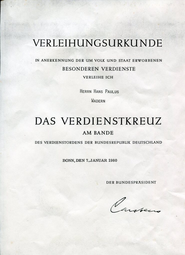 7.1.1980 Verleihung des Verdienstkreuzes am Bande des Verdienstordens der Bundesrepublik Deutschland