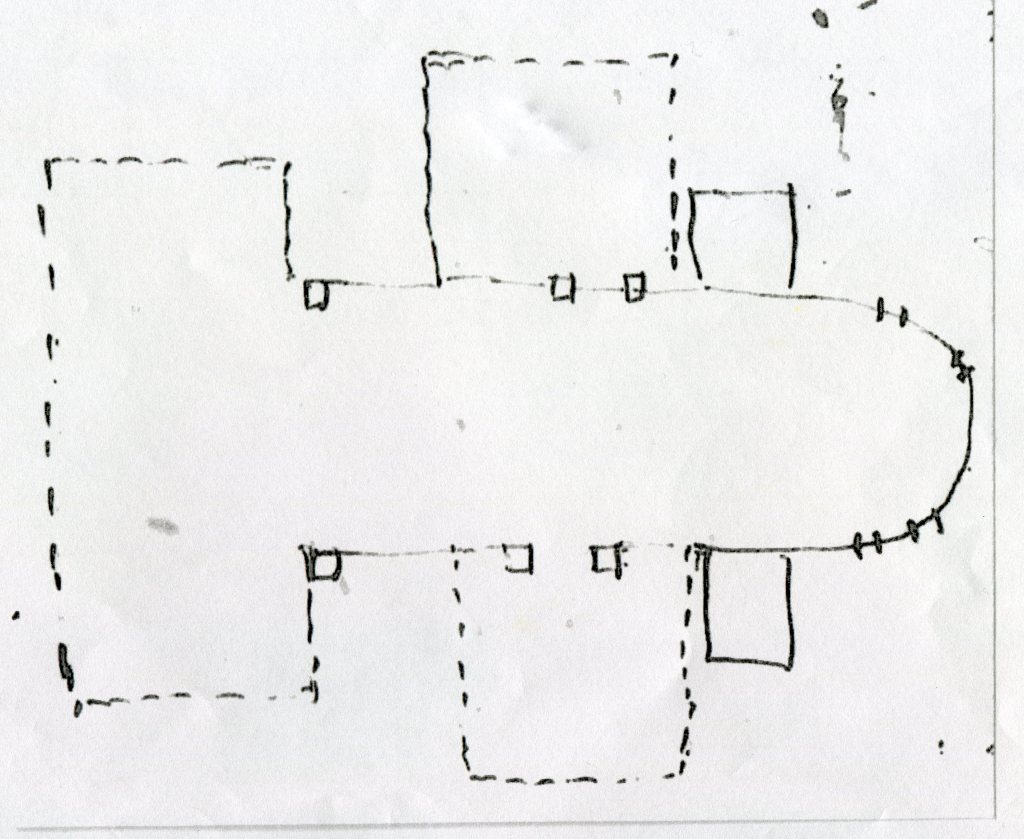 Folglich könnten am Schiff vor Turm und Sakristei Kreuzarme angebracht werden, sofern der Raum das zulässt. Somit würde die Kirche mehr als ums doppelte vergrößert, was sicherlich ausreichen würde. Die Gestalt der Kirche wäre dann eine sehr gefällige Kreuzkirche. Dringend nötig ist, dass bald etwas geschieht, weil der Regen schon durch das schadhafte Dach eindringt“.