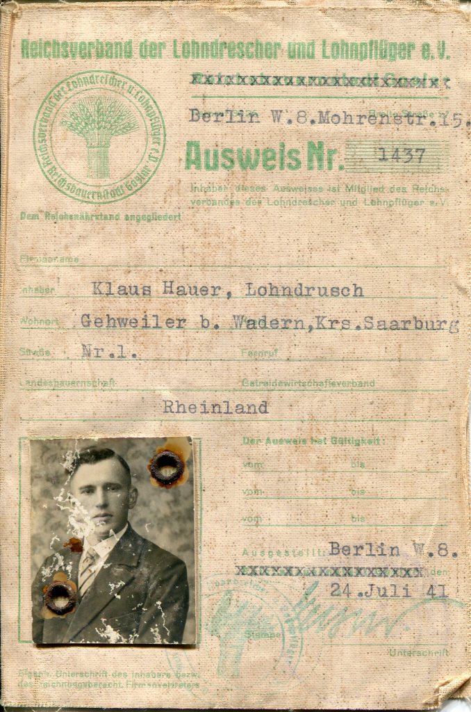Klaus und Maria hatten zusammen drei Kinder (Mathilde, geb. 1940, Gerlinde, geb. 1946, und Fridolin, geb. 1950, gest. 1979). Er hatte den ersten modernen Traktor, einen zweisitzigen Hanomag. Auch hatte er den ersten Mähdrescher der Gegend. Wahrscheinlich wurde der Mahlbetrieb 1940 eingestellt. Bereits 1941 kaufte Klaus Hauer (Hausname Kéiwisch) eine Dreschmaschine, die bis 1962 arbeitete.Im Herbst dieses Jahres wurde der Dreschschuppen durch einen von spielenden Kindern ausgelösten Brand zerstört. Zwei Jungen (Fridolin Hauer und Franz Lang) hatten mit Stroh beladene kleine “Feuerschiffe” auf dem Mühlengraben schwimmen lassen. Das Feuer griff auf die Dreschmaschine, den Getreidespeicher und den Schuppen über. Ein Nachbar (Jakob Lauer) konnte ein junges Mädchen (Heidi Gebel) aus dem brennenden Schuppen retten.