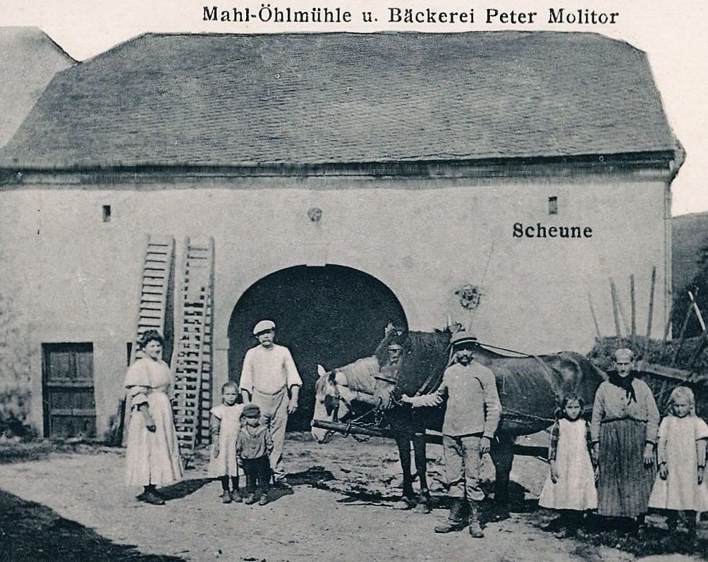 Nach Peters Tod 1953 übernahm sein Sohn Reinhold (geb. 1925) die Mühle. Reinhold machte nach der Rückkehr aus dem Krieg eine Bäckerlehre in Trier und baute eine Backstube ein. Später kamen Lebensmittel dazu. Der Laden befand sich im Raum rechts von der Eingangstür. Schließlich kam der Flur noch dazu. Zuerst gehörte das Geschäft zur Lebensmittelkette von A&O, später zu EDEKA. Reinhold und Josefa machten früh den Führerschein und hatten seit 1951 ein Auto. Die Bauern gaben Getreide ab und erhielten dafür Brotgutscheine.